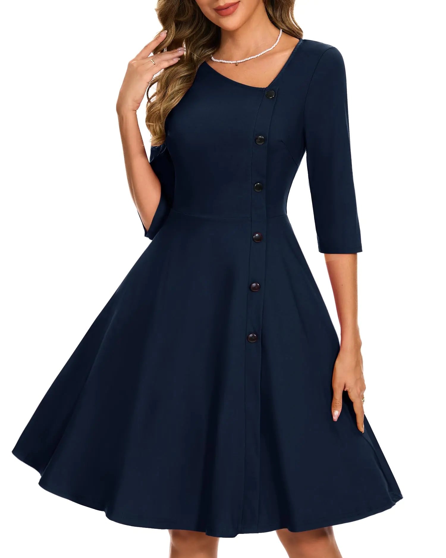 Women's Loose Plaid Woolen Coat with Button Pockets